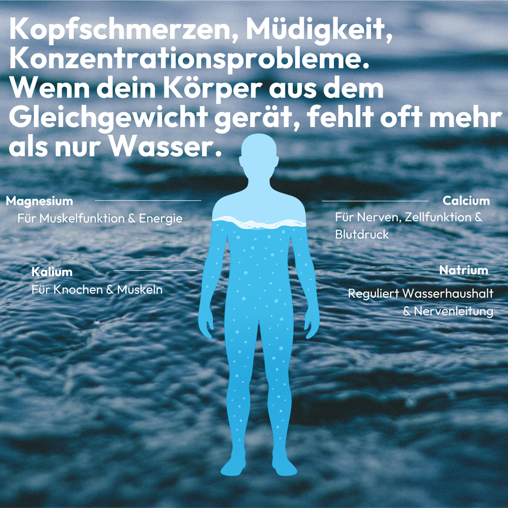 Auch im Alltag verliert dein Körper Mineralstoffe – ganz unbemerkt. Warum Wasser allein oft nicht reicht – und wie du dein Wohlgefühl im Alltag unterstützt.